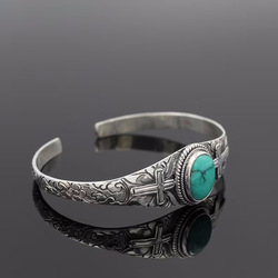 विंटेज नक्काशीदार कछुए बोहेमियन क्रॉस समायोज्य चांदी कंगन